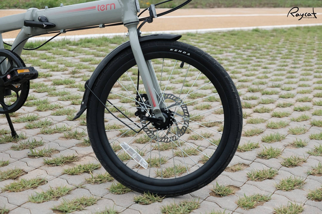 켄다 타이어가 기본으로 장착되어 있고 바퀴에 빛 반사판이 있습니다.