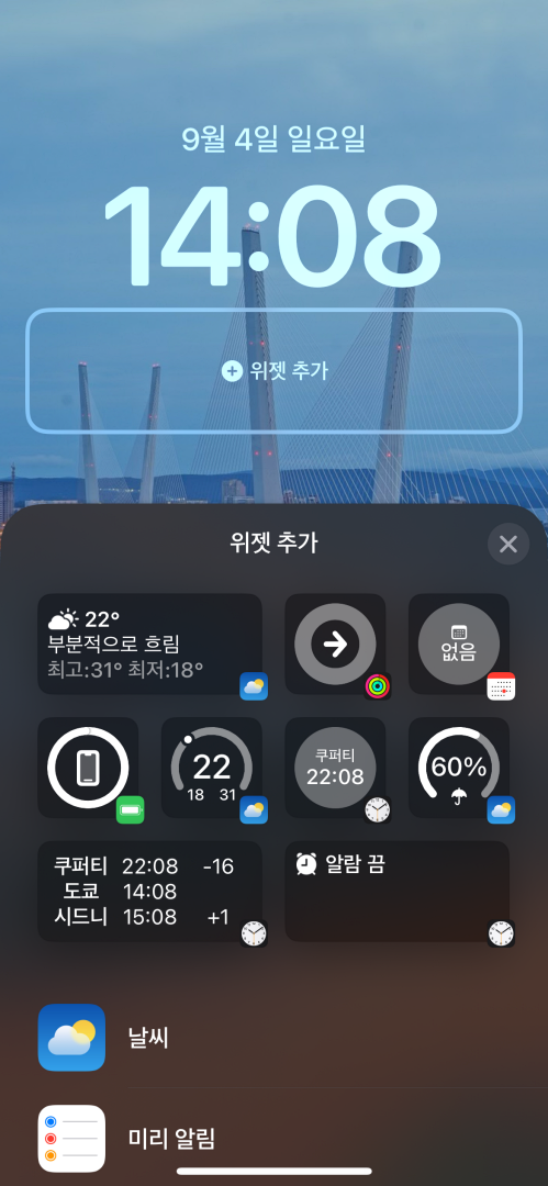 아마 아이폰14 발표 후 정식 버전이 나올 것 같은데 현재 iOS16 베타를 사용 중인데 이번 iOS16에서 달라진 부분 중 하나가 잠금화면과 배경화면의 사용자화 그리고 잠금화면에서 위젯 추가로 사용자가 자신이 자주 사용하는 기능을 위젯으로 추가할 수 있는 부분입니다.