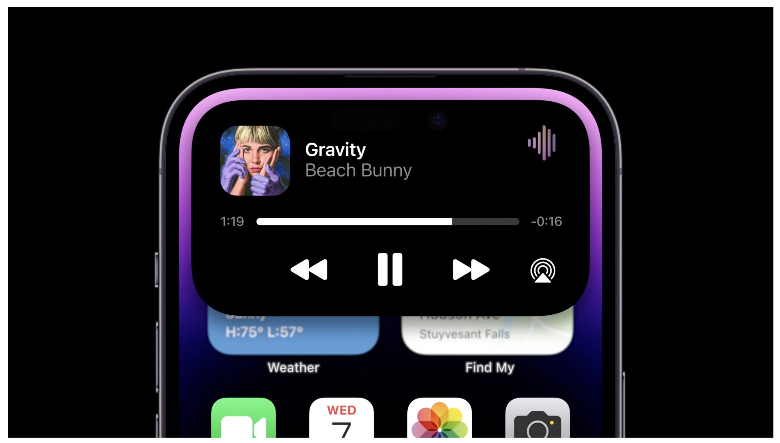 또 프로 시리즈의 경우 기존의 노치를 대체하는 펀치홀 디자인의 카메라 홀은 다이나믹 아일랜드라 불리는 새로운 UI가 적용되었습니다.