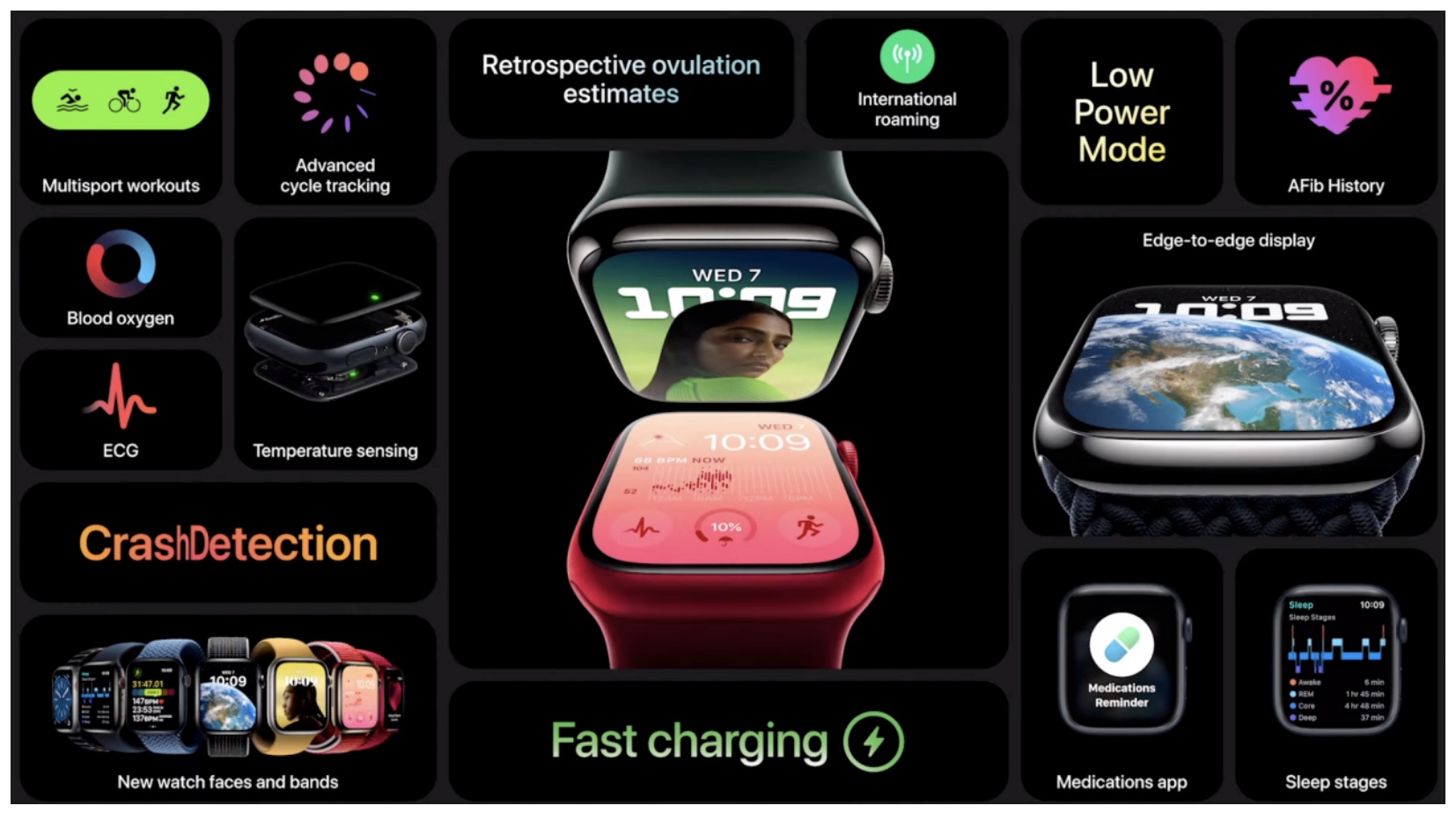 애플워치 시리즈8도 디자인의 변화가 없으며 가장 크게 달라진 부분은 건강과 안전기능을 강화했습니다.