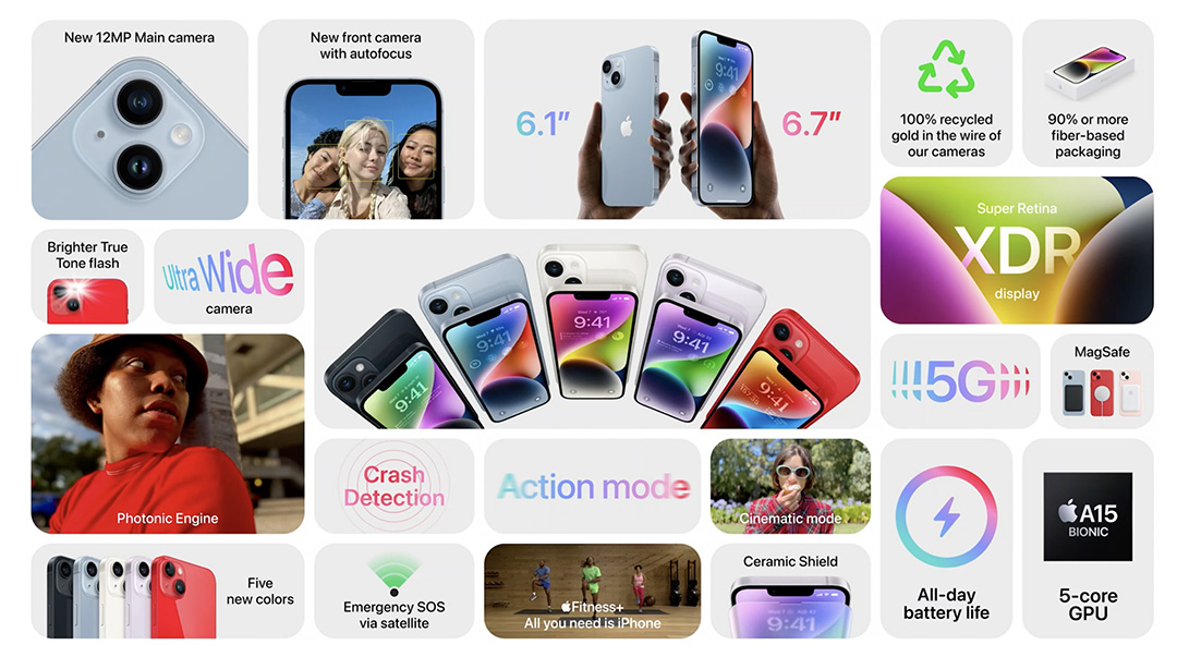 대부분 디바이스가 이미 유출이 많이 되긴 했지만 대부분 유출된 정보와 비슷하게 제품이 공개되었습니다. 먼저 가장 중요한 제품이 아이폰14 시리즈부터 한번 보죠.