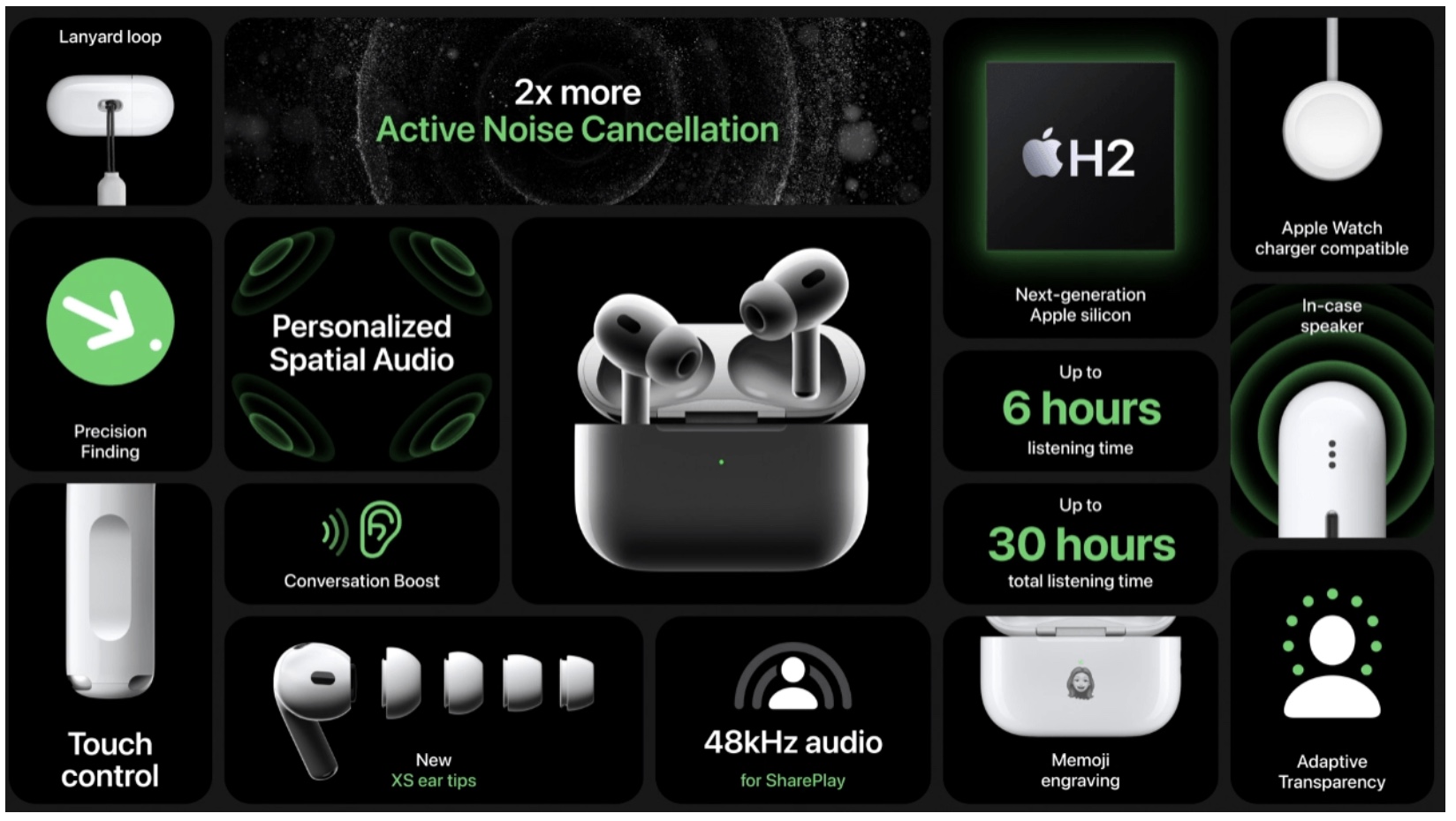 에어팟 프로 2세대의 경우 전반적인 사운드 기능 향상에 초점을 두고 있으며 디자인에 큰 변화는 없습니다.
