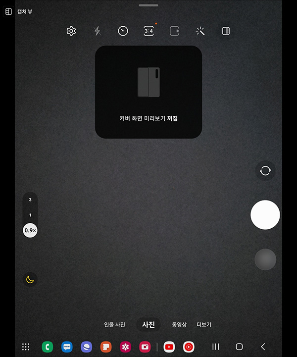 계속 폴드를 사용해 왔다면 익숙하지만 갤럭시 폴드4를 접어서 사용하게 되면 자동으로 플렉스 모드로 바뀌며 UI가 바뀌게 됩니다.