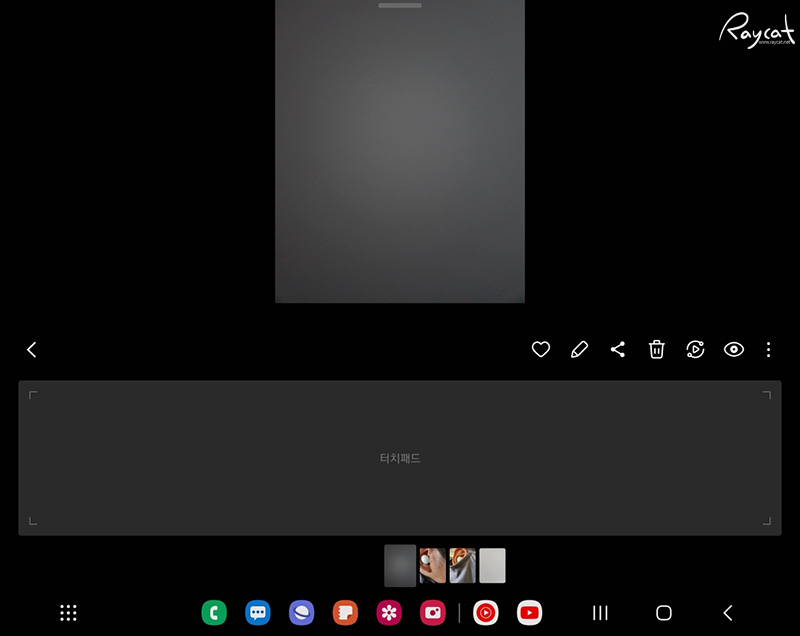 갤러리에서 플렉스 모드를 사용하게 될 경우 아래쪽 화면에 터치패드가 나오며 일반 PC에서 사용하는 터치패드 처럼 사용할 수 있습니다. 터치패드를 터치해 사진을 넘기며 볼 수 있습니다.