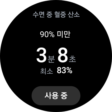 수면 중 혈중 산소 역시 계속 기록이 되는데 90% 미만으로 내려가면 수면 호흡장애인 폐쇄성수면을 의심해 볼 수 있는데 단 그 시간이 짧다면 사실 큰 영향이 있는것은 아닙니다.