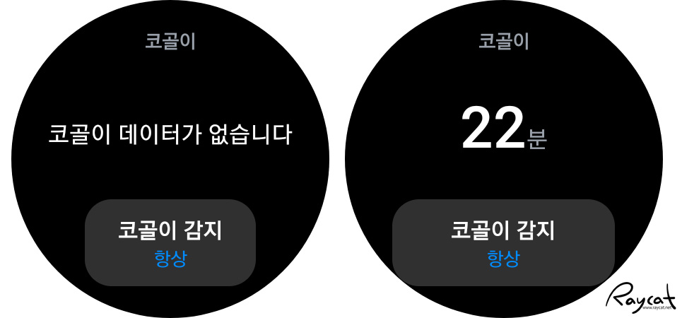 단 수면측정의 경우 시계를 늘 착용하고 잠을 자야하며 코골이 측정을 위해 워치와 연결된 스마트폰도 사용자의 머리맡이나 가까운 위치에 두고 잠을 자야하기 때문에 예민한 분들은 좀 불편할수도 있습니다.