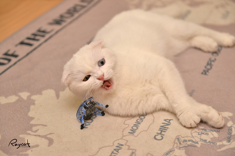 아래는 원래 고양이 장난감이 아니였지만 벌레 로봇도 고양이한테 꽤 좋은 장난감이 된다.