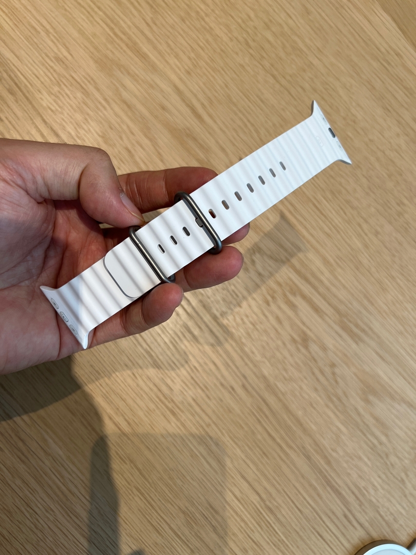 애플워치 울트라의 오션 밴드는 수중 활동을 위한 스트랩이라 알파인 루프와 소재가 다릅니다.