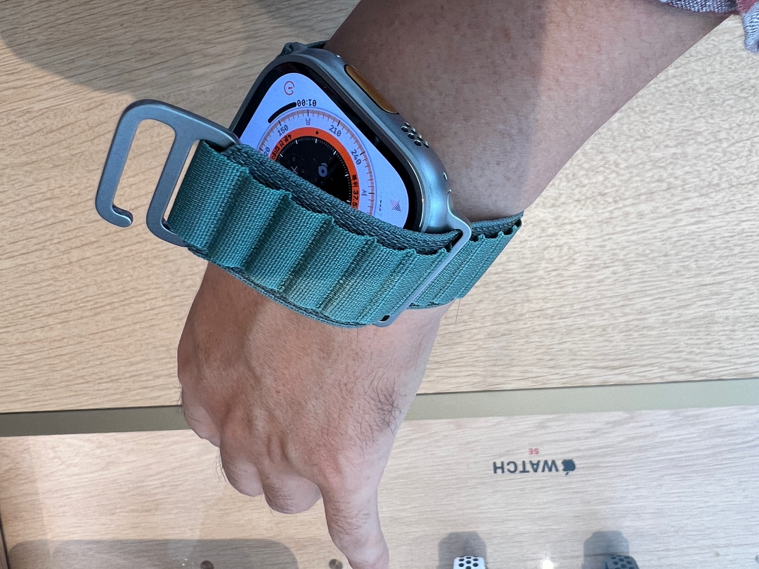 알파인 루프 스트랩은 산악 전문가를 위한 스트랩이라고 하는데 이번에 애플워치 울트라와 함께 새로 선보인 스트랩은 산악용 알파인 루프, 다이버를 위한 오션 밴드, 운동선수용 트레일 루프가 있습니다.