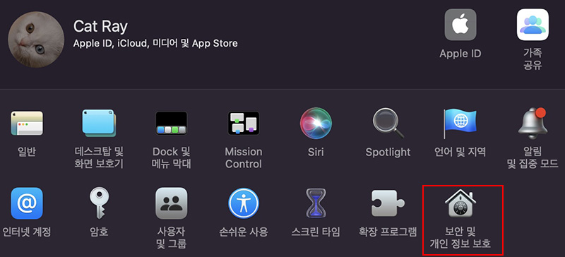 먼저 애플워치로 맥을 자동 잠금해제하려면 시스템 환경 설정에서 보안 및 개인 정보 보호를 클릭합니다.