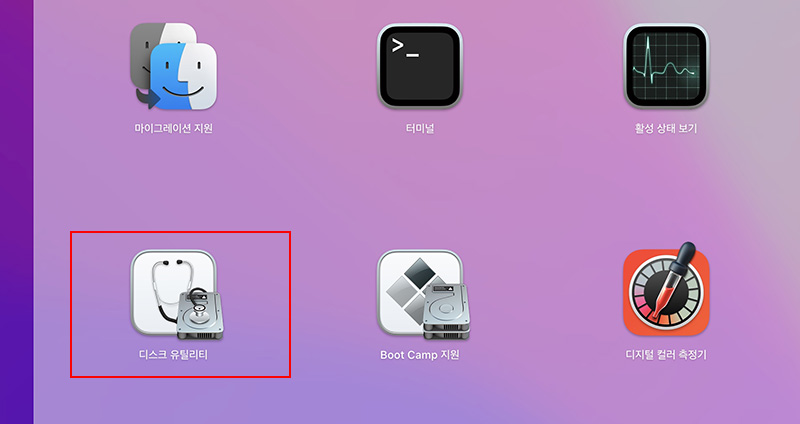 디스크 유틸리티는 일반적으로 응용 프로그램 폴더의 유틸리티 폴더에서 디스크 유틸리티를 실행하면 바로 실행 됩니다.