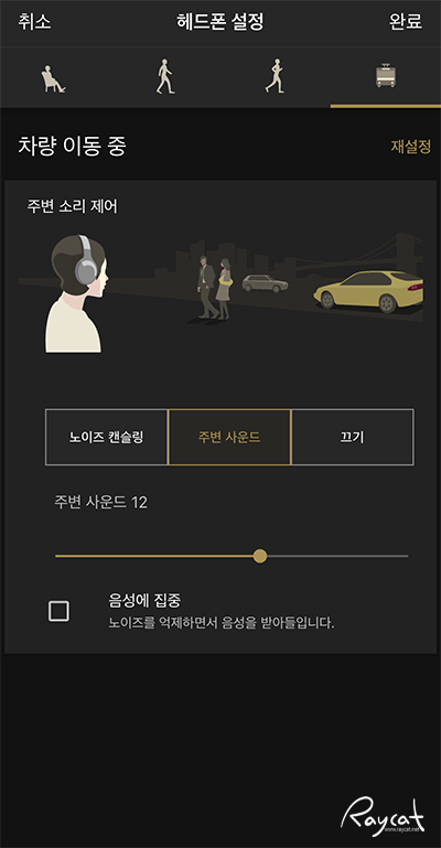 적응형 사운드 제어는 사용자가 자주가는 위치 혹은 지하철이나 자동차 안에서 사용자가 자주 가는 장소에 따라 사운드의 울림이 조금씩 달라지는데 주변 사운드가 헤드폰에 인입되는 크기도 바뀌게 됩니다.