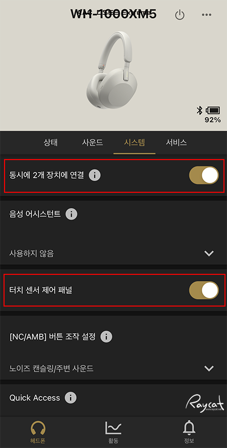 토치 센서 제어 패널 조작은 헤드폰의 기능중 주로 사용하는 기능들이기 때문에 설정에서 가장 먼저 켜 두고 사용하는 게 좋습니다.