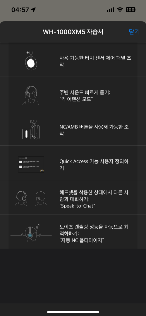 소니 헤드폰의 경우 앱에 설정을 해줘야 제대로 사용할 수 있는 기능들이 있습니다.