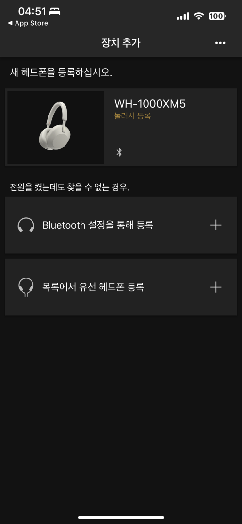 먼저 소니 헤드폰 앱에서 블루투스로 헤드폰을 연결합니다.