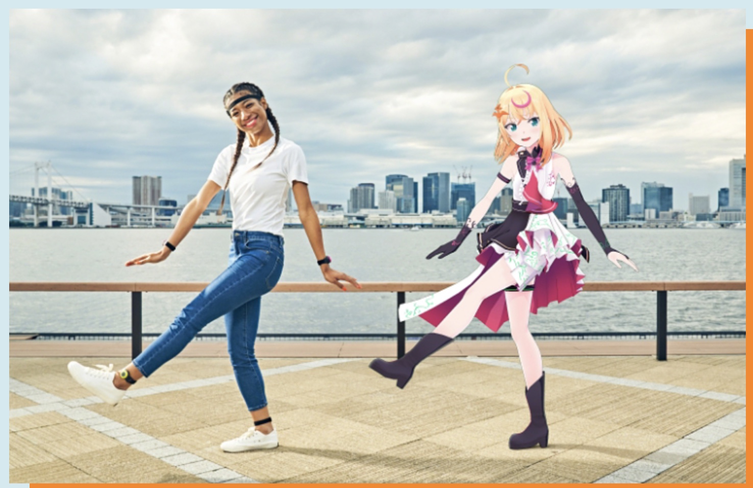 스마트폰으로 만드는 이모지를 생각하면 되는데 보통 스마트폰으로 내 얼굴을 스캔해 만들어지는 아바타는 입모양이나 눈 등을 따라 가지만 mocopi는 사람이 춤을 추거나 어떤 행동을 하면 그것을 그대로 캡처해 아바타가 그 동작으로 움직이게 됩니다.