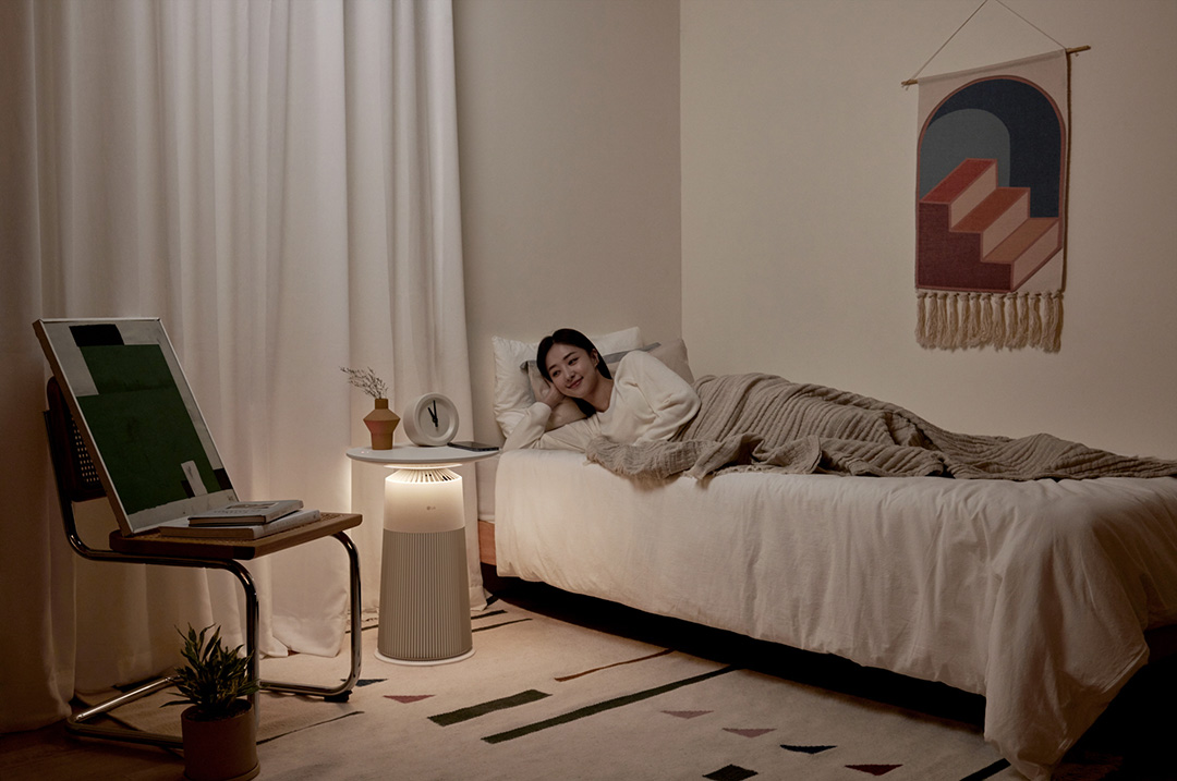 LG 퓨리케어 오브제 컬렉션 에어로퍼니처는 바람을 내보내는 팬을 UV LED로 살균해 유해세균을 99.99% 제거하는 UV나노(UVnano) 기능 항바이러스 항균 효과는 물론 극초미세먼지를 비롯해 암모니아, 포름알데히드, 톨루엔, 아세트산, 아세트알데히드 등 5대 유해가스를 제거하는 공기청정 필터를 탑재했으며 청정 면적은 19.8제곱미터(약 6평)다.