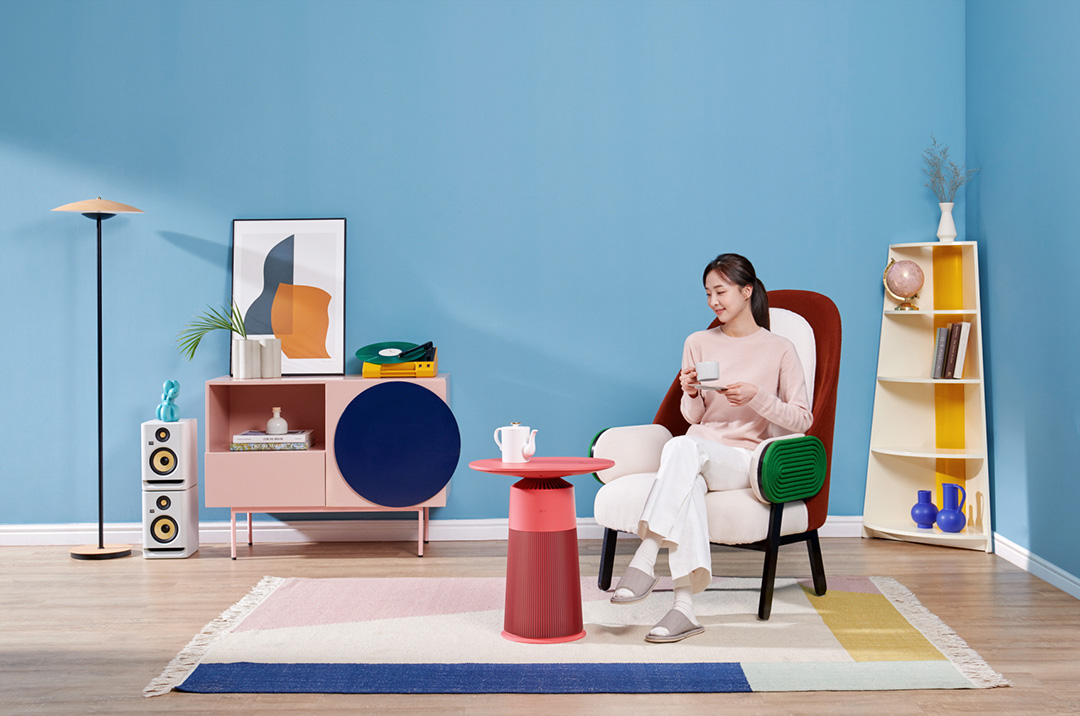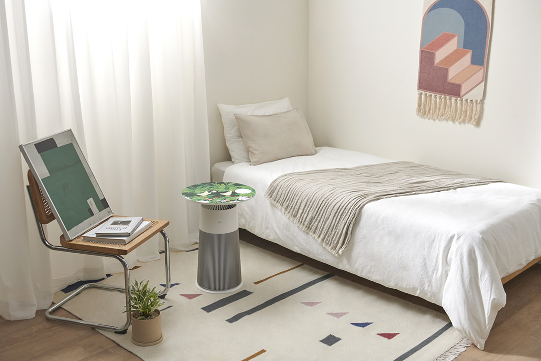 퓨리케어 에어로퍼니처는 탁자 형태의 디자인으로 방마다 공기청정기를 사용하는 추세에 맞춰 인테리어와 편의성을 고려하는 사용자를 위한 융복합 공기청정기입니다.