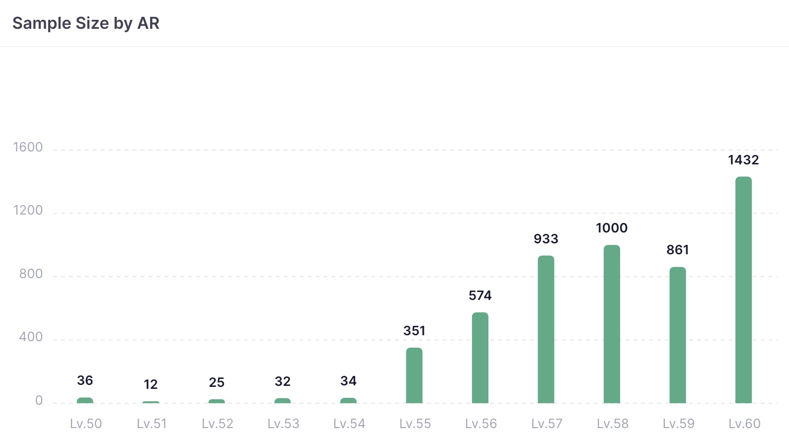 제 경우도 모험렙 60인데 나선비경 12층까지 36별을 달성한 모험렙 유저의 숫자는 60렙이 가장 많네요.