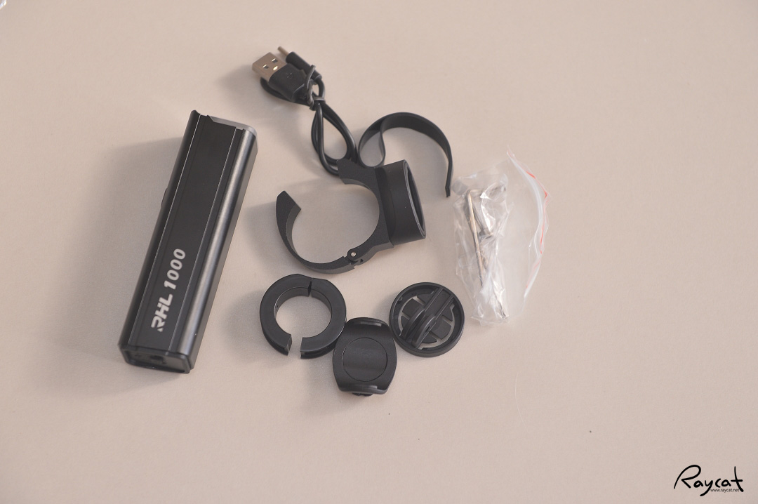 가격은 3만 원대로 제품 패키지의 구성품을 보면 RHL1000 전조등, 자전거에 결합하는 브라켓, USB-C 케이블, 고프로용 마운트, 육각렌치가 있습니다. 휴대하기 쉽고 분리해서 후레시처럼 사용할 수 있는 전조등이라 분리나 결합은 쉬운 편입니다.