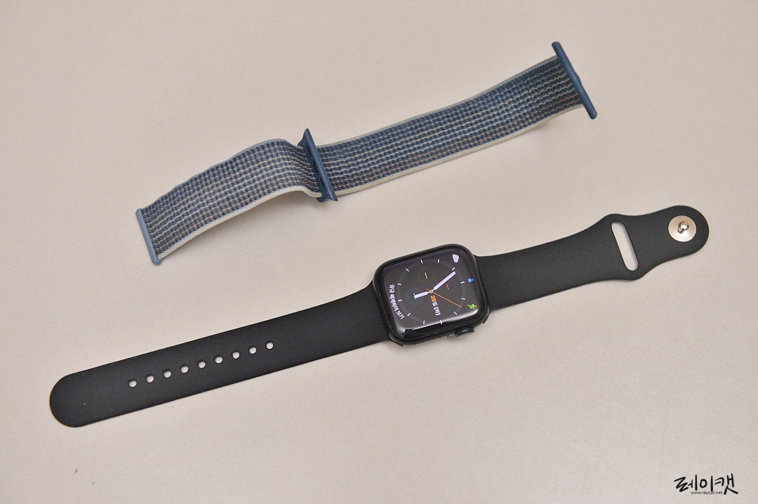 기존에 사용하던 애플워치8 스포츠 루프와 다이소 애플워치 실리콘 밴드를 비교해 보면 스포츠 루프는 나일론 소재라 통기성이 좋고 길이 조절이 아주 쉬운 편이기도 합니다.