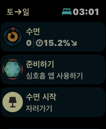모든 데이터는 아이폰 오토슬립에서 보여주지만 수면시작 수면측정은 애플워치에 설치한 오토슬립에서 실행하게 됩니다.