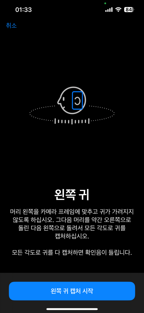 참고로 귀를 스캔할 때 카메라 방향을 잡기 힘든데 욕실 세면대의 거울을 활용해 얼굴을 살짝 돌려서 거울에 비치는 귀를 보면서 하면 더 편합니다.