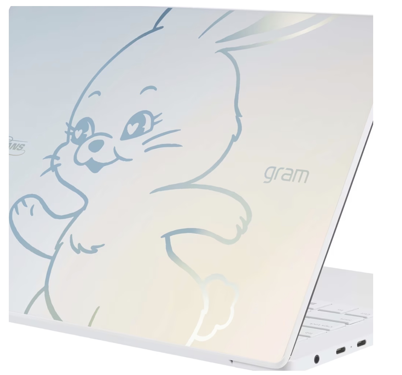 개인적으로 상판에 그려진 토끼가 아주 귀엽게 느껴집니다. 디자인은 일반 그램과 같지만 상판에 그려진 버니가 가장 큰 특징이기도 합니다.