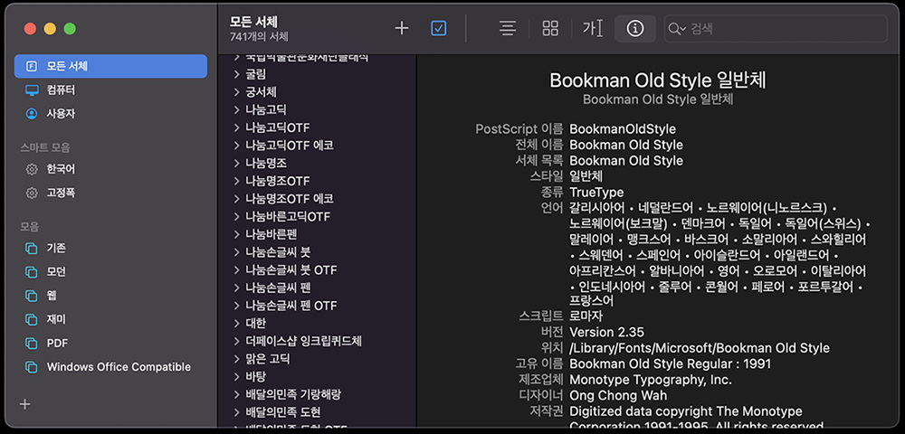 그리고 맥용 OTF 폰트외에 요즘 문서용 앱을 설치하다 보면 같은 폰트가 윈도용과 맥용으로 같이 설치되는 경우가 있습니다.