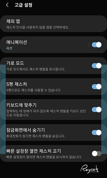 즉 사용자의 손가락 길이나 본인 사용 습관에 따라 제스처 설정은 좀 더 세세하게 설정하면 됩니다. 이건 사용하면서 조금씩 본인의 습관이나 손가락 길이에 맞춰 설정하면 됩니다.