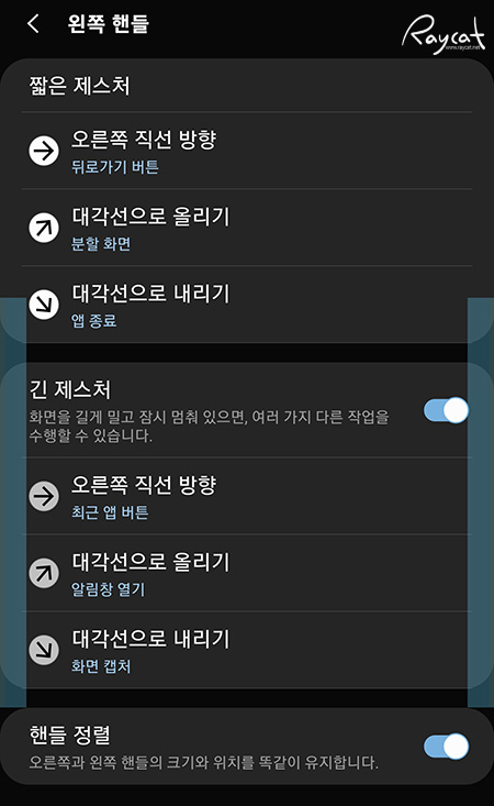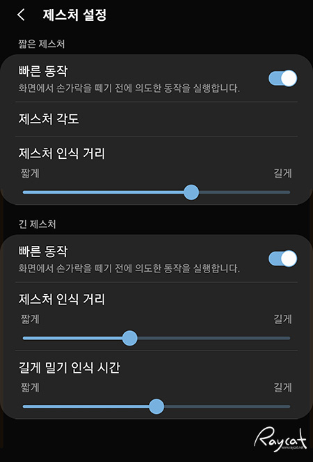 즉 사용자의 손가락 길이나 본인 사용 습관에 따라 제스처 설정은 좀 더 세세하게 설정하면 됩니다. 이건 사용하면서 조금씩 본인의 습관이나 손가락 길이에 맞춰 설정하면 됩니다.