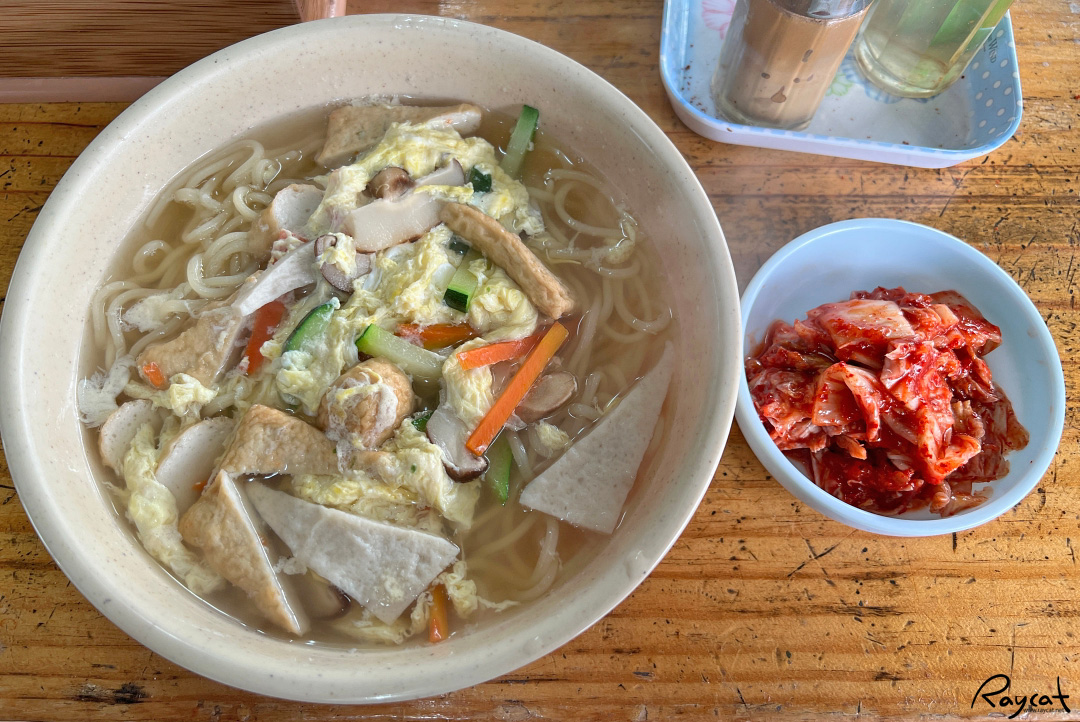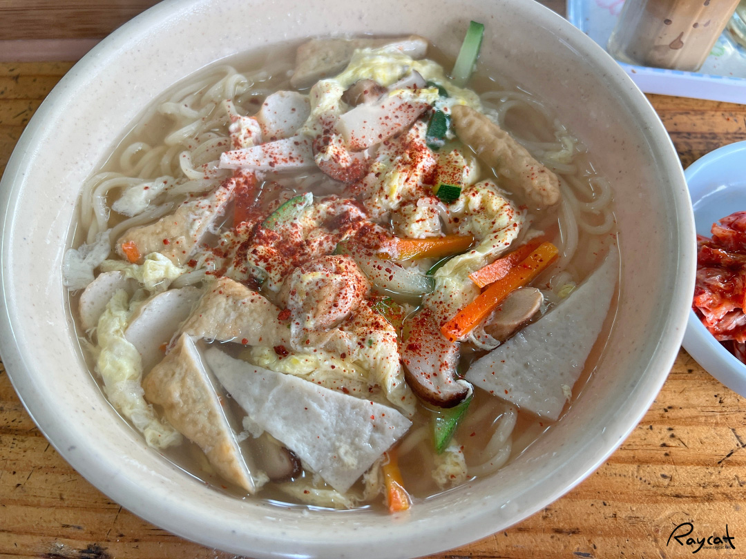 5,000원짜리 우동치고는 그래도 푸짐한 느낌인데 어묵외에 버섯, 호박, 당근, 계란등이 들어가 있어서 어묵이 없으면 칼국수 같은 느낌이 드는데 김치와 함께 같이 먹으면 더 맛있다.