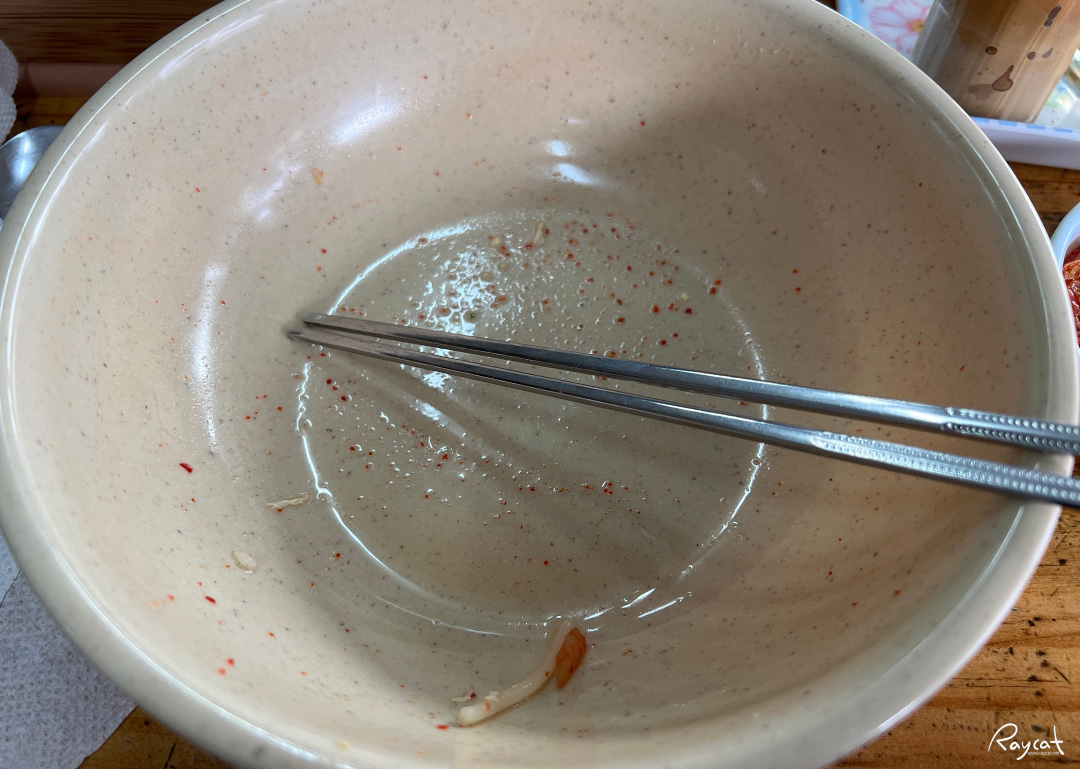 국물이 조금 심심하고 싱거운 맛이라 어른들 입에 더 맞는 그런 맛이라고 할까? 어쨌든 내 입에는 좀 심심한데 이게 고추가루를 좀 넣어서 먹으면 그 심심한 맛이 덜해지면서 살짝 매콤 담백한 느낌을 준다.