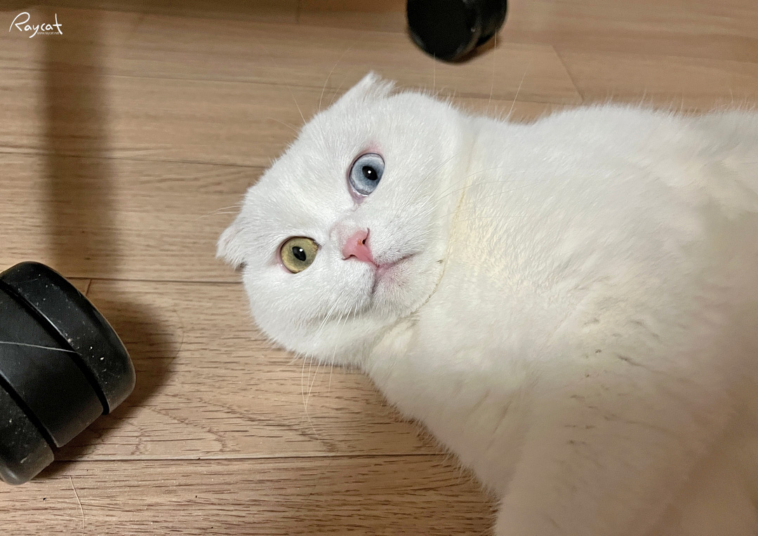 몸이 웅크러지는 겨울은 사람이나 고양이나 활동성이 떨어지는데 봄이 오면 고양이도 활동성이 좋아진다고 할까? 바닥에 드러누워서 사람 지나갈 때마다 발로 톡톡 치는데 반응을 안 보이면 눈을 동그랗게 뜨고 사람을 계속 쳐다본다.