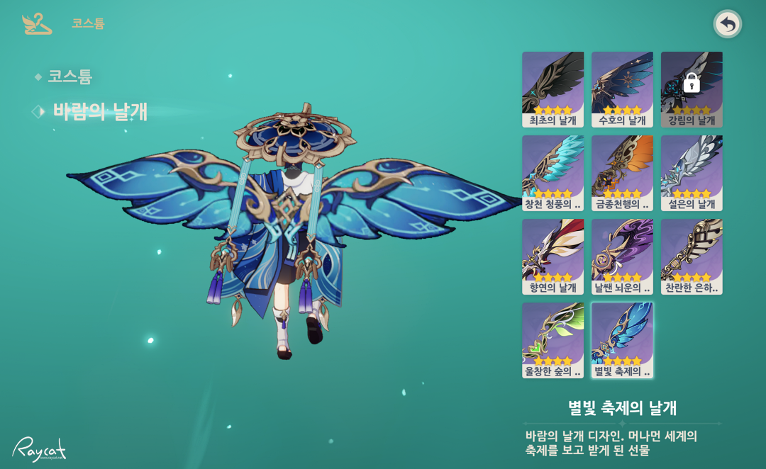 이번 한정 바람의 날개 '별빛 축제의 날개'는 방랑자, 닐루, 레일라가 컬러가 비슷한 느낌이라 제일 잘 어울리는 느낌입니다.