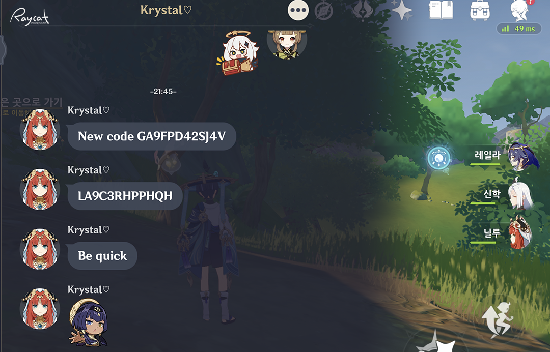 그리고 아래 이미지는 오늘 외국인 친구가 채팅으로 알려준 새로운 리딤코드입니다.