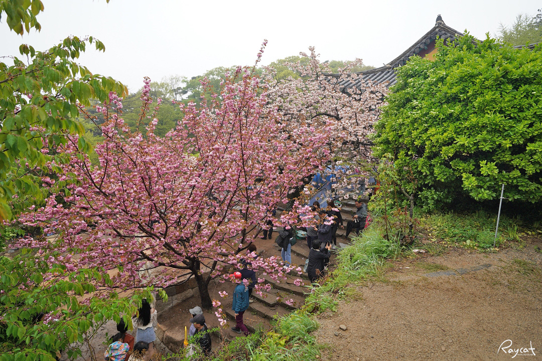 대웅전부터 스님들이 수행하는 암자까지 절 중간중간 핑크빛의 겹벚꽃이 만개해 아직까지 한참 봄이 진행되고 있음을 보여준다.