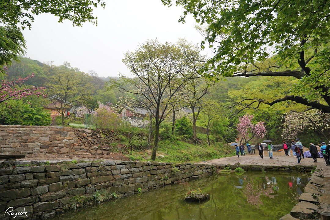 4월 중순이면 관광버스가 산으로 줄지어 들어가고 절 아래 주차장은 차를 세울 곳이 없을 만큼 꽉 차는데 이곳이 유독 사람이 붐비는 시기는 산 아래에 벚꽃이 떨어질 때쯤 만개하는 겹벚꽃과 청벚꽃 때문이다.
