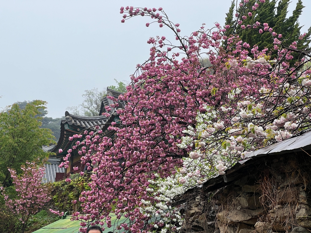 대웅전부터 스님들이 수행하는 암자까지 절 중간중간 핑크빛의 겹벚꽃이 만개해 아직까지 한참 봄이 진행되고 있음을 보여준다.