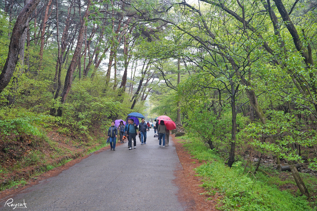 주차장에서 개심사까지 도보로 20분 정도 소요되는데 비가 오는데도 개심사 청벚꽃이 만개 했다는 소식에 사람들이 꽤 많이 올라왔다.
