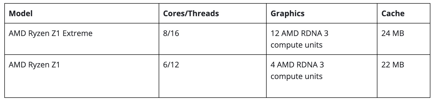 이번 라이젠 Z1 시리즈는 두 가지 고성능 프로세서인 라이젠 Z1과 라이젠 Z1 익스트림으로 구성되었습니다.