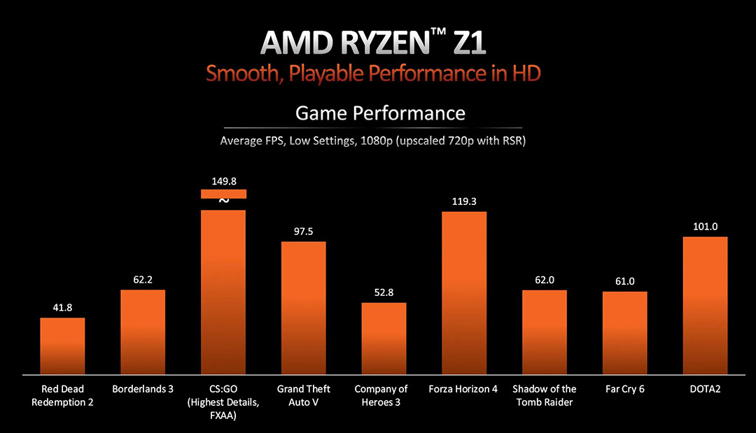 아래는 AMD에서 공개한 라이젠 Z1 시리즈의 퍼포먼스 데이터입니다.
