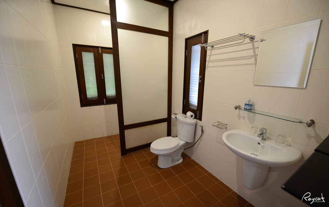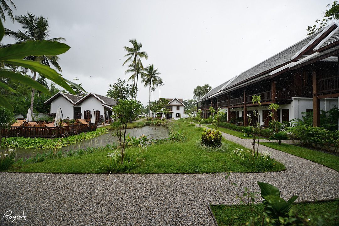작은 연못도 있고 수영장도 있는데 목조 건물들이 라오스 사찰의 건축 양식 같은 느낌인데 고층 건물을 지을 수 없는 루앙프라방의 법규 때문에 호텔이 아닌 마치 방갈로 같은 느낌을 주는 곳이기도 하다.