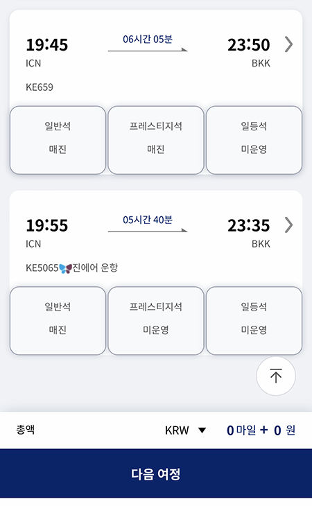 일단 검색해 보니 7월 말부터 8월 초까지 방콕으로 가는 티켓은 모두 매진입니다.