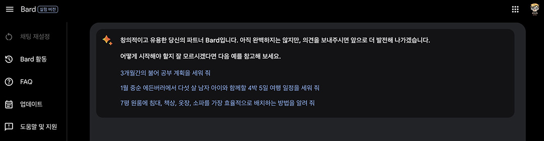 한국어를 지원한다는 점이 의미가 큰데 구글 바드의 경우 베타 테스트때 평가가 그렇게 좋았던 AI가 아닙니다.