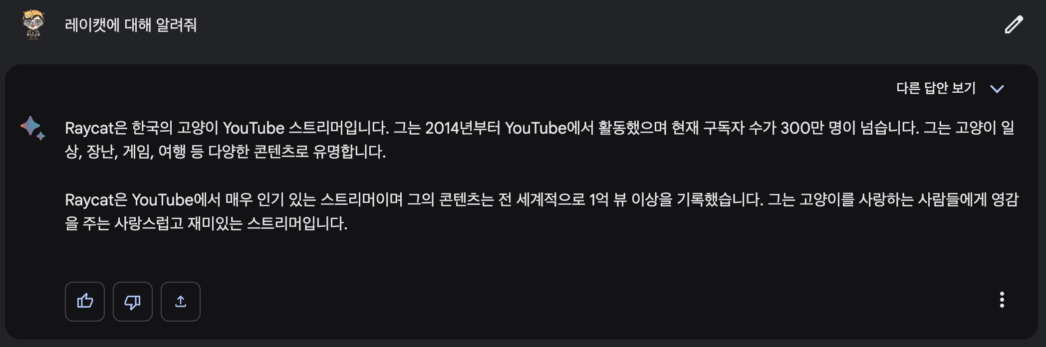 그리고 아래는 완전한 오답이지만 재미삼아 한번 구글 바드에 질문해 봤는데 완전한 오답이긴 하지만 제가 대충 뭘하고 있는지 파악은 하고 있는듯 합니다. 아직 구독자 3천도 안되는데 어쨌든 그냥 기분이 좋은 답변이네요.