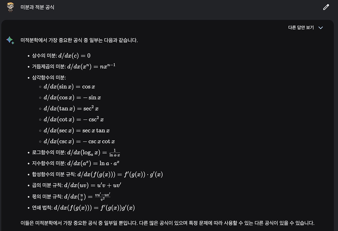 이런 수학 공식은 정확하게 답이 정해진 문제니 틀릴일은 없겠지만 다른 답안에 보면 새로운 공식도 계속 제안하고 있습니다.