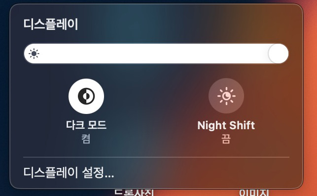 빠르게 디스플레이를 밝기를 조절하거나 다크 모드를 켜거나 나이트 쉬프트를 on/off 할때 사용할 수 있습니다.