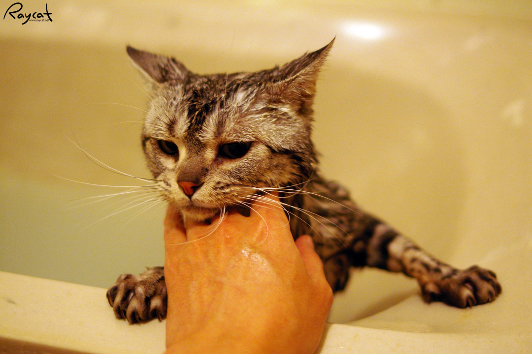 지금까지 보호한 고양이나 탁묘 한 고양이중 목욕을 좋아했던 고양이는 없다. 고양이를 씻기는 일은 연중행사로 전쟁과 같다.
