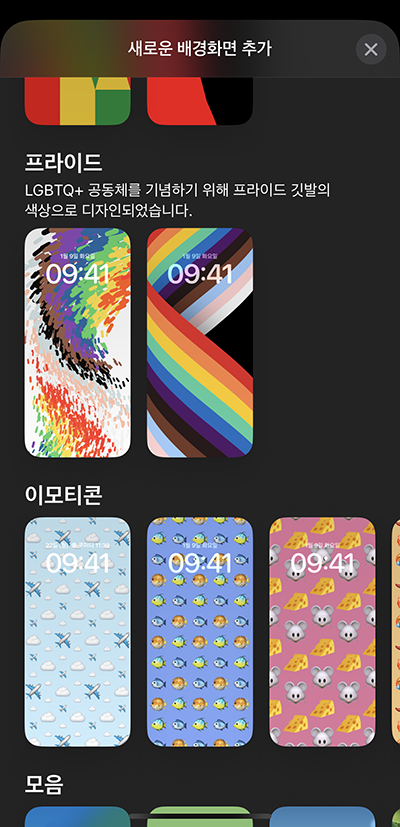프라이드 셀레브레이션이라는 배경화면과 애플워치 페이스가 추가되었는데 아이폰에 적용한 건 별로였는데 애플워치에 적용한 화면은 괜찮았는데 모션 효과도 있고 그 의미를 보고 사용하실 분은 사용하시면 될 것 같습니다.